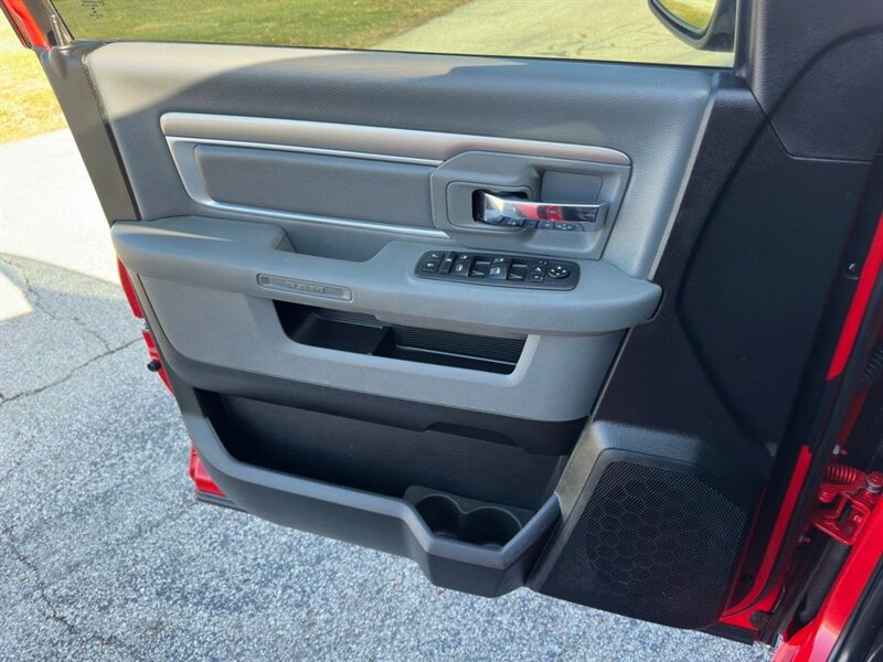 - Exterior: Delmonico Red Pearl Coat factory paint with Big Horn exterior styling cues — chrome/brightwork accents and a distinctive grille treatment typical of the Big Horn trim. Alloy wheels are fitted from the factory, along with durable bumpers and practical bed lighting and tie-down points for cargo management.